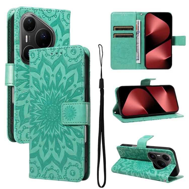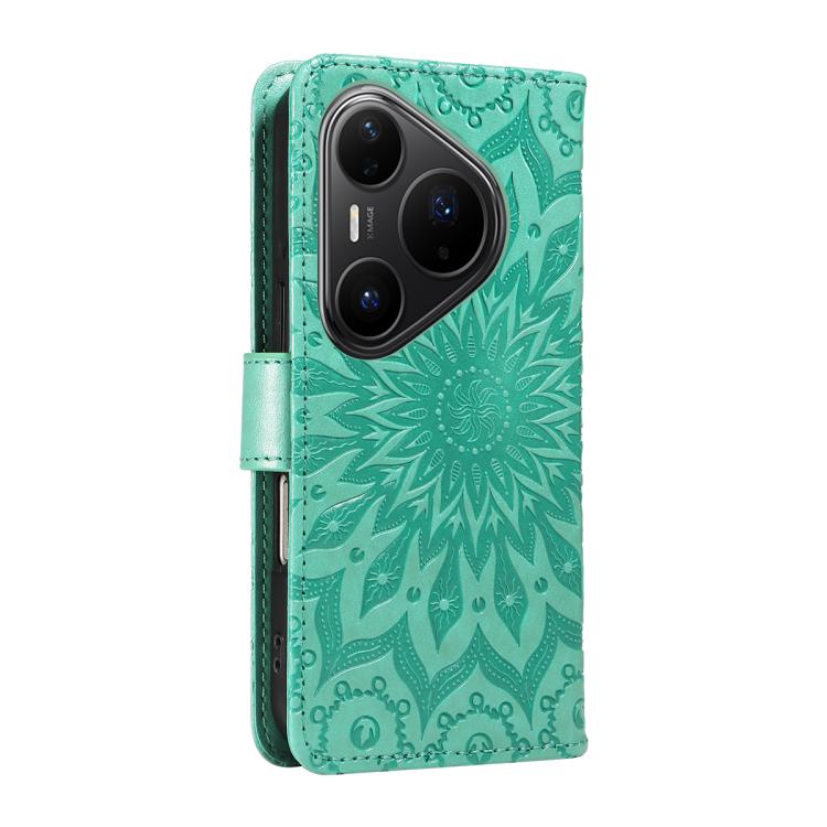 Peňaženkové puzdro Embossing Pattern Slnečnica zelené – Huawei Pura 80 Pro