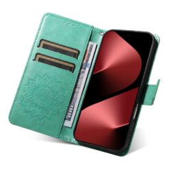 Peňaženkové puzdro Embossing Pattern Slnečnica zelené prispôsobené pre mobil Huawei Pura 80 Pro s lisovaným vzorom. Toto pevné puzdro bolo navrhnuté tak, aby poskytovalo smartfónom ešte lepšiu ochranu pred mechanickým poškodením v dôsledku pádov alebo otrasov. Puzdro má vrecká na dokumenty, do ktorých môžete vložiť karty a priestor na bankovky. Povrchová úprava z ekokože dodáva puzdru elegantný vzhľad a flexibilná vložka z TPU uľahčuje vkladanie mobilného telefónu do puzdra.