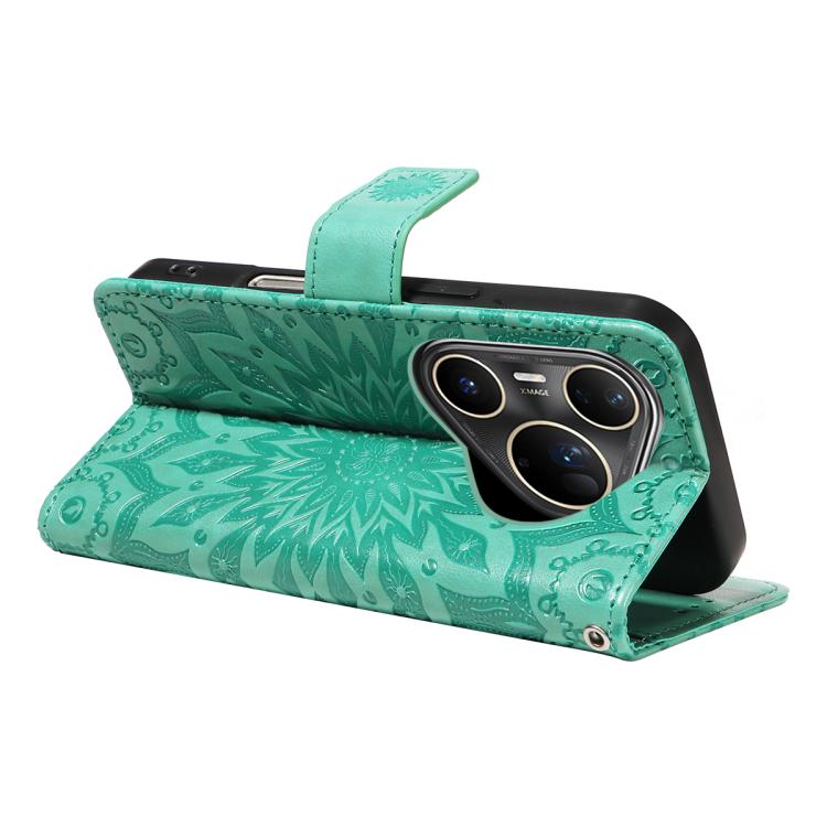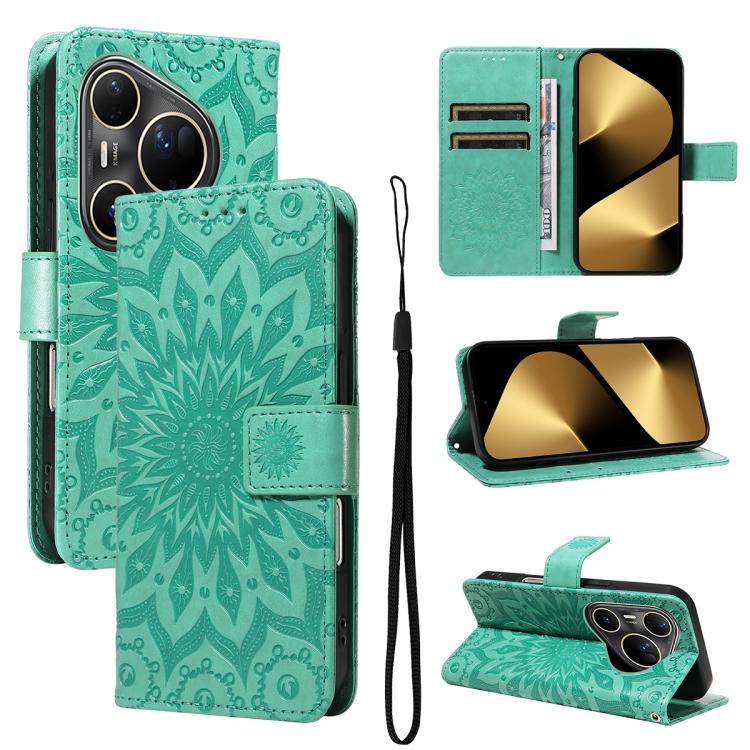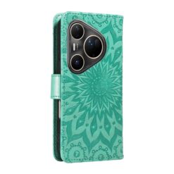 Peňaženkové puzdro Embossing Pattern Slnečnica zelené – Huawei Pura 80 Ultra