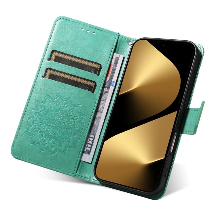 Peňaženkové puzdro Embossing Pattern Slnečnica zelené prispôsobené pre mobil Huawei Pura 80 Ultra s lisovaným vzorom. Toto pevné puzdro bolo navrhnuté tak, aby poskytovalo smartfónom ešte lepšiu ochranu pred mechanickým poškodením v dôsledku pádov alebo otrasov. Puzdro má vrecká na dokumenty, do ktorých môžete vložiť karty a priestor na bankovky. Povrchová úprava z ekokože dodáva puzdru elegantný vzhľad a flexibilná vložka z TPU uľahčuje vkladanie mobilného telefónu do puzdra.