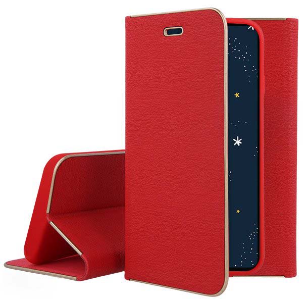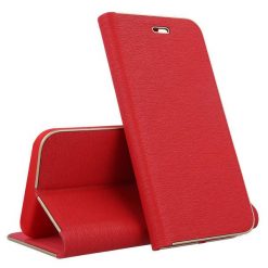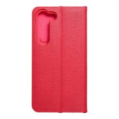 Elegantné knižkové puzdro Luna book červené pre mobilné telefóny Samsung Galaxy S23+ (S23 Plus) s kovovým rámom pre lepšiu ochranu telefónu. Atraktívna textúra a materiál príjemný na dotyk vytvárajú štýlové puzdro s moderným dizajnom.