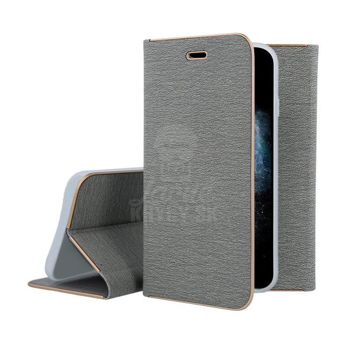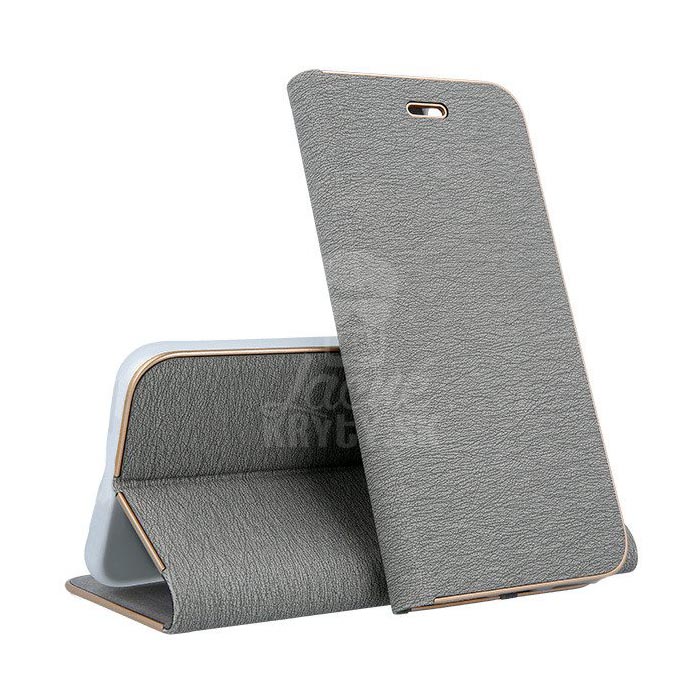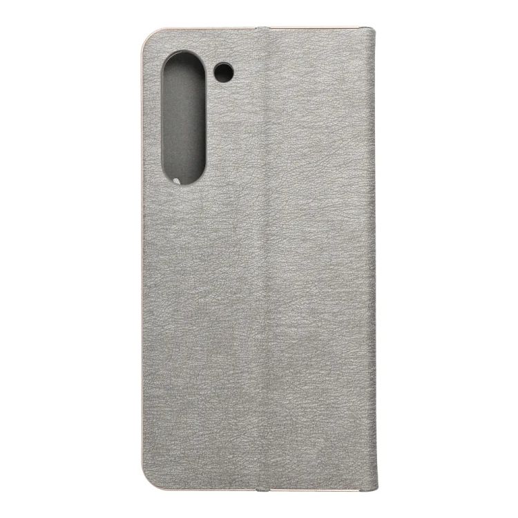 Elegantné knižkové puzdro Luna book strieborné pre mobilné telefóny Samsung Galaxy S23+ (S23 Plus) s kovovým rámom pre lepšiu ochranu telefónu. Atraktívna textúra a materiál príjemný na dotyk vytvárajú štýlové puzdro s moderným dizajnom.