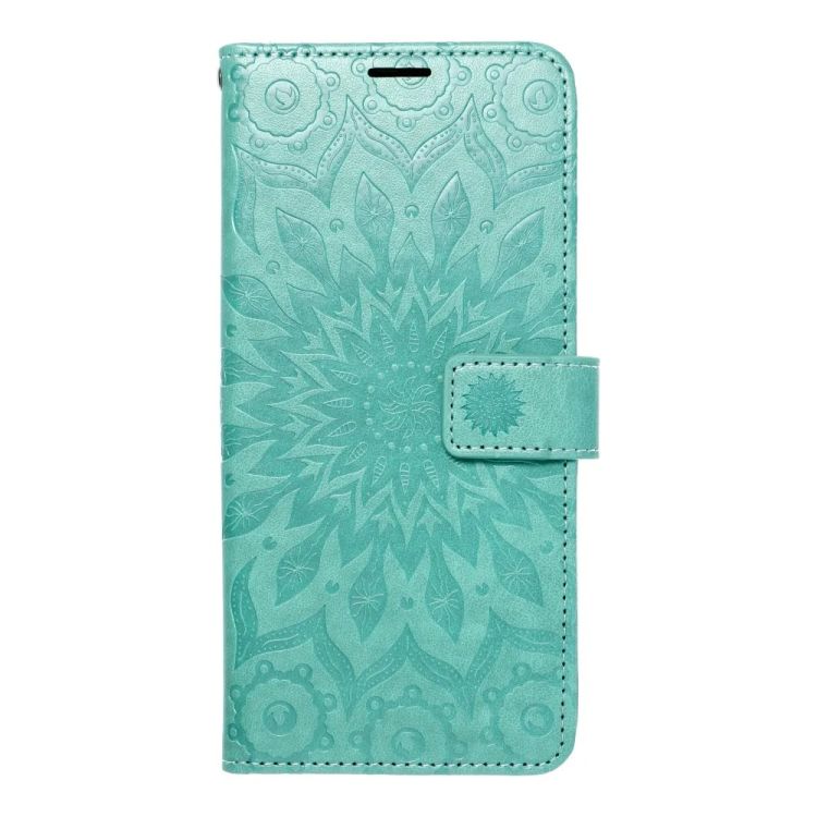 Peňaženkové puzdro Mezzo mandala zelené pre mobil Samsung Galaxy S23+ (S23 Plus) s lisovaným vzorom mandaly. Puzdro má dve vrecká na dokumenty, do ktorých môžete vložiť karty aj bankovky. Šnúrka pripevnená k puzdru zaručuje bezpečné uchopenie puzdra, vďaka čomu ho budete držať vždy pri sebe. Povrchová úprava z ekokože dodáva puzdru elegantný vzhľad a flexibilná vložka z TPU uľahčuje vkladanie mobilného telefónu do puzdra. Magnetické zapínanie zaisťuje pevné uzatvorenie puzdra a zabraňuje jeho náhodnému otvoreniu.